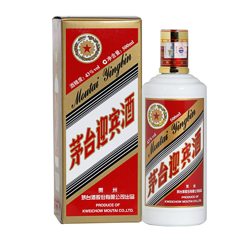 普通版系列产品,是采用大曲、麸曲混合生产工艺开发的酱香型白酒,已通过“绿色食品”认证,部分采用贵州茅台酒传统工艺酿造,原料为茅台酒酒糟、当地及周边出产的有机高粱、和小麦。茅台集团迎宾酒从投料生产到产品出厂少需要二年时间(基酒生产一年、成品存放一年以上出厂)。